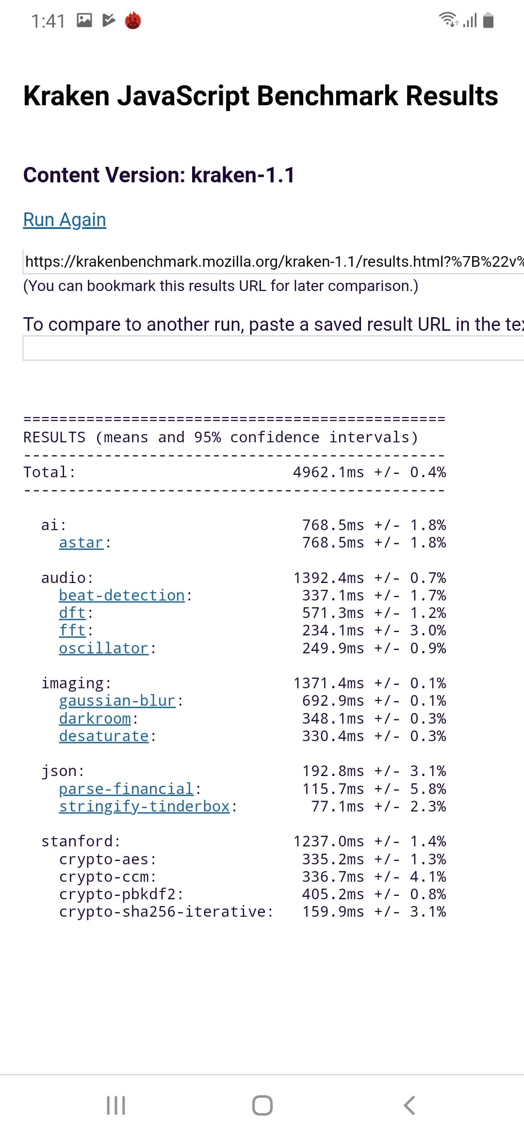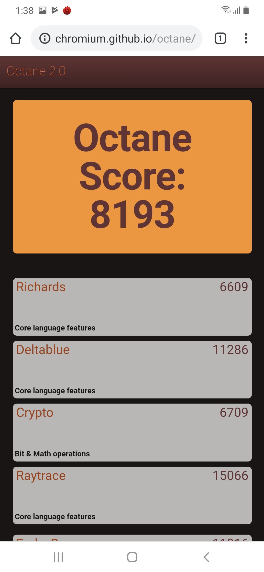 Что касается бенчмарков для оценки скорости движка javascript, то стоит всегда делать скидку на то, что в них результаты существенно зависят от браузера, в котором запускаются, так что сравнение может быть истинно корректным только на одинаковых ОС и браузерах, а такая возможность имеется при тестировании не всегда. В случае с ОС Android мы всегда стараемся использовать Google Chrome.