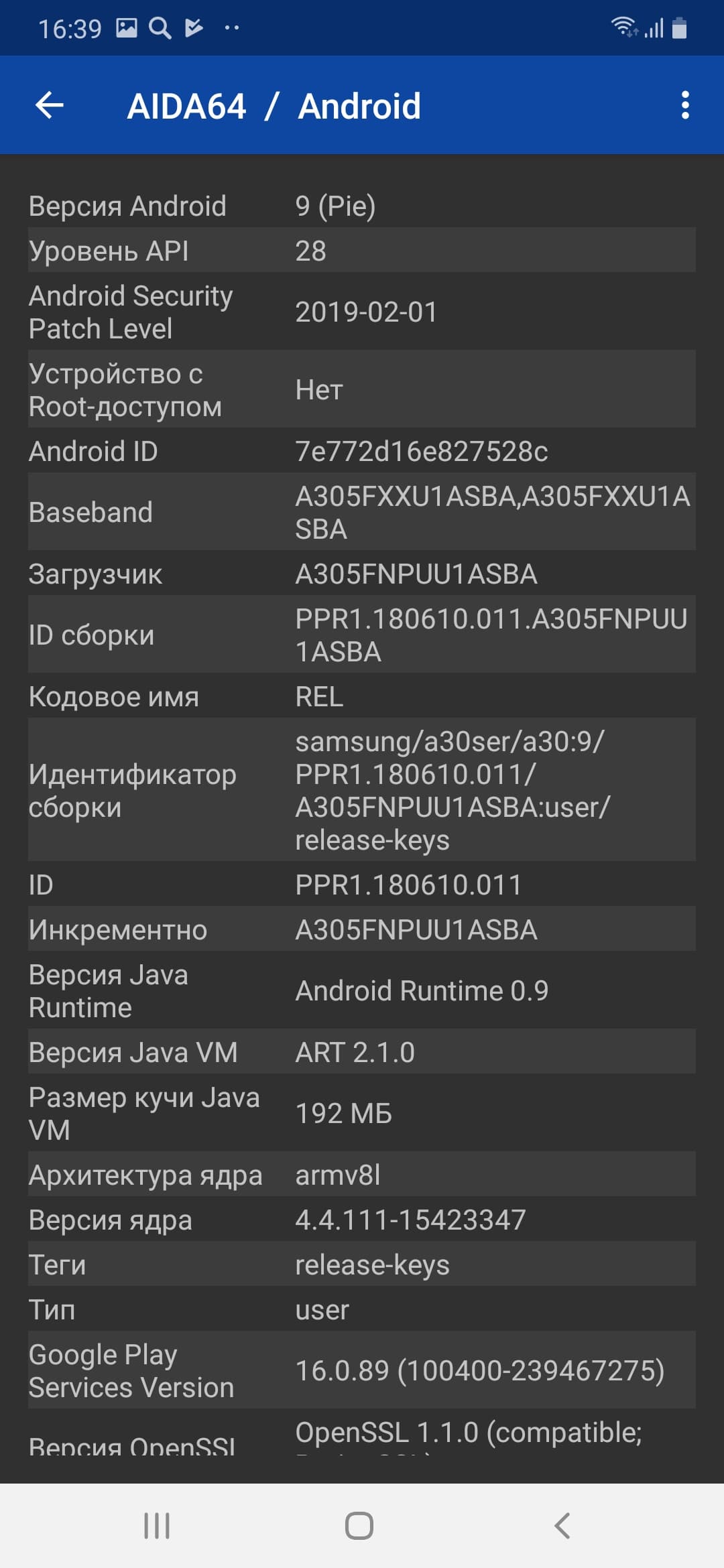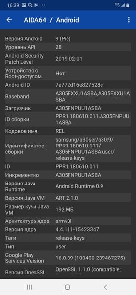 Основные характеристики Samsung Galaxy A30 (модель SM-A305FN)