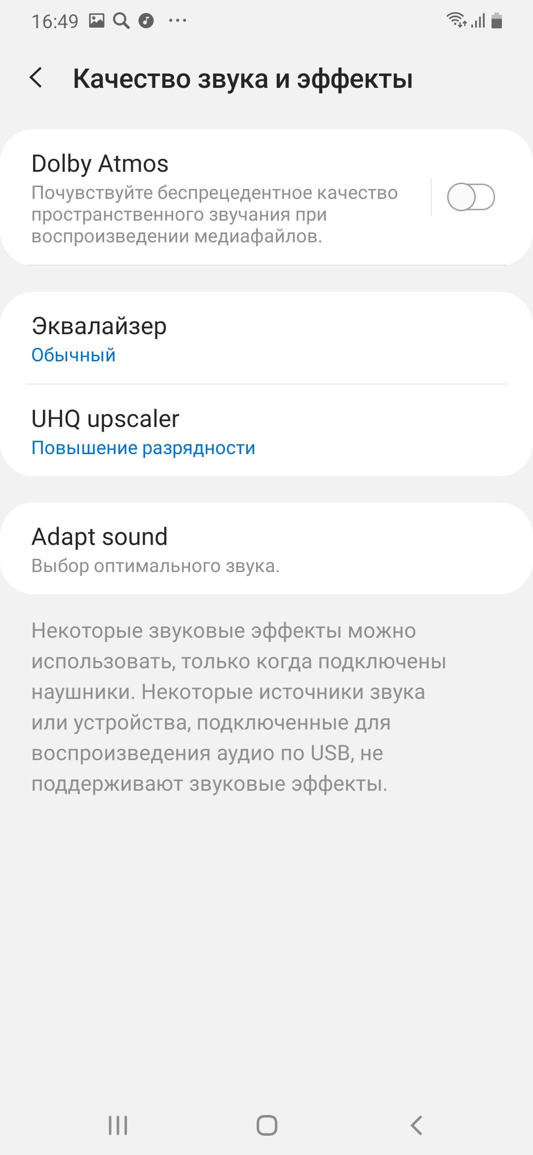 В мультимедийном плане смартфон далеко не так хорош, как Galaxy A50. Громкоговоритель выдает простенький и не очень благозвучный звук, да и в наушниках, несмотря на огромное количество настроек, звучание не идеально. Хотя звук в целом чистый, и запас громкости выше среднего, но какой-то неяркий. Зато есть и FM-радио (работает только с наушниками) и высококачественный чувствительный диктофон, подходящий для записи лекций и семинаров.