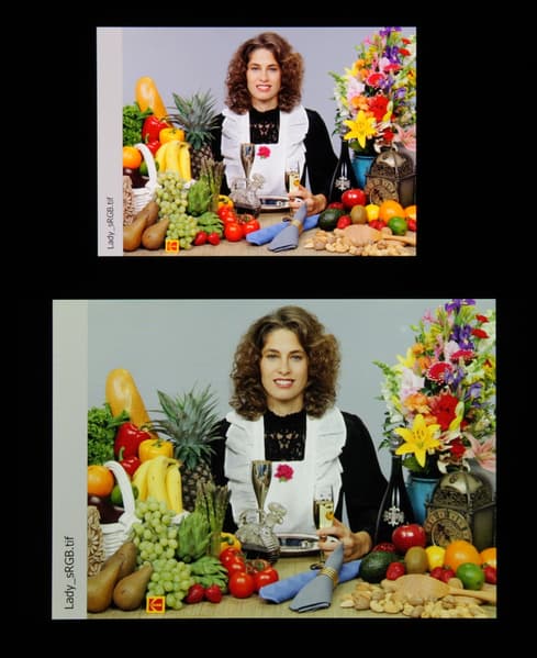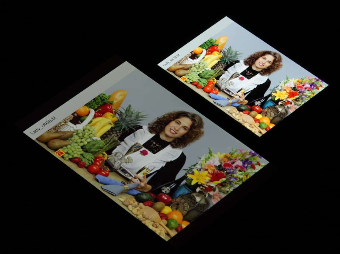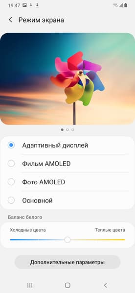 Отметим, что на экранах с широким цветовым охватом (без соответствующей коррекции) цвета́ обычных изображений, оптимизированных для устройств sRGB, выглядят неестественно насыщенными. Отсюда и рекомендация: в большинстве случаев смотреть кино, фотографии и все естественное лучше при выборе профиля Основной, и только если фотография сделана на установке Adobe RGB, имеет смысл переключить профиль на Фото AMOLED. Аналогично, профиль Фильм AMOLED уместен при просмотре видеоматериала с охватом DCI-P3, принятым в цифровом кинематографе.