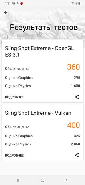| 3DMark Ice Storm Sling Shot Ex Vulkan (больше — лучше) | 400 | 1374 | 819 | 542 | — |