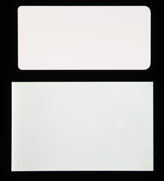 Экран характеризуется великолепными углами обзора. Правда, белый цвет при отклонении даже на небольшие углы приобретает едва заметный сине-зеленый или розоватый оттенок, но черный цвет остается просто черным под любыми углами. Он настолько черный, что параметр контрастности в данном случае неприменим. Для сравнения приведем фотографии, на которых на экраны Samsung Galaxy A30 (профиль Основной) и второго участника сравнения выведены одинаковые изображения, при этом яркость экранов изначально установлена примерно на 200 кд/м², а цветовой баланс на фотоаппарате принудительно переключен на 6500 К.