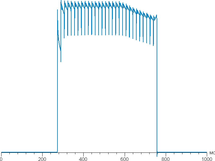 В некоторых условиях наличие такой ступеньки может приводить к шлейфам, тянущимися за движущимися объектами. Впрочем, динамичные сцены в фильмах на экранах OLED отличаются высокой четкостью и даже некоторой «дерганностью» движений. На графике выше видно, как через несколько десятков миллисекунд начинает снижаться яркость при выводе белого почти во весь экран.