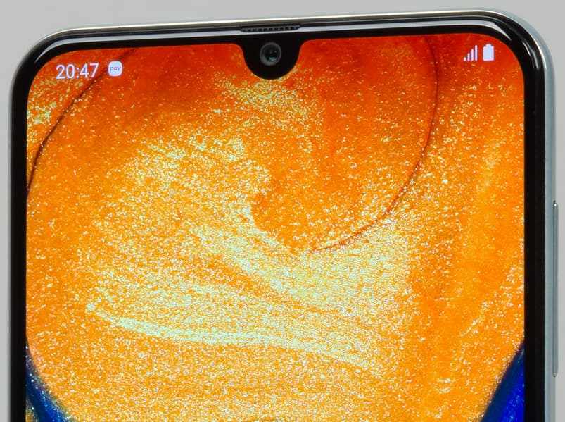 Samsung Galaxy A30 оснащен дисплеем Super AMOLED с защитным 2.5D-стеклом. Размеры экрана составляют 68×147 мм при диагонали 6,4 дюйма, разрешение — 2340×1080 (соотношение сторон 19,5:9), что дает плотность точек около 403 ppi. Ширина рамки с боков составляет 3 мм, отступ снизу — 7 мм, сверху — 3 мм.