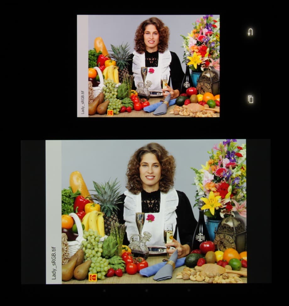 Отметим, что на экранах с широким цветовым охватом без соответствующей коррекции цвета обычных изображений, оптимизированных для устройств sRGB, выглядят неестественно насыщенными. Отсюда и рекомендация — в большинстве случаем смотреть кино, фотографии и все естественное лучше при выборе профиля Основной, и только если фотография сделана на установке Adobe RGB, имеет смысл переключить профиль на Фото AMOLED. Профиль Фильм AMOLED, несмотря на название, наименее пригоден для просмотра фильмов и вообще чего бы-то ни было.