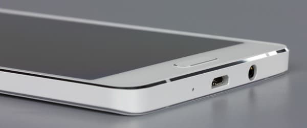 По обеим боковым сторонам разместили механические клавиши регулировки громкости и блокировки, кнопки достаточно крупные, жесткие, металлизированные, к элементам управления в аппаратах Samsung традиционно никаких претензий. А вот разъем Micro-USB 2.0 и аудиовыход на наушники диаметром 3,5 мм на этот раз сгрудили на одном, нижнем торце, очень близко друг к другу. Соответственно, на верхнем торце нет ничего, кроме второго вспомогательного микрофона. Просто поразительно, но смартфон ценой в 24 тысячи рублей создатели не удосужились даже оснастить поддержкой OTG (USB Host).