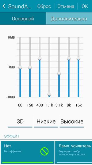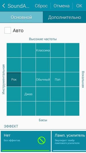 Для проигрывания мелодий стандартно используется фирменный проигрыватель с максимальным количеством настроек. Все звуковые эффекты при этом объединены технологией под названием SoundAlive — правда, часть из них доступна лишь с подключенными наушниками. Это же касается и функции оптимизации звука. Разнообразных виртуальных эффектов представлено очень много, визуально они объединены в матрицу из квадратиков.