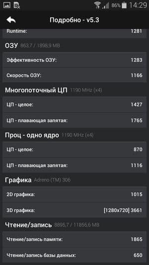 По результатам тестирования, если сравнивать производительность новой 64-битной платформы Qualcomm Snapdragon 410 с предыдущей 32-битной SoC Snapdragon 400, то никакого особо заметного прироста не видно. Разница, безусловно, есть, но на фоне результатов платформ более высокого уровня значимость такого прироста нивелируется. Здесь все те же скромные результаты (до 20К) в AnTuTu на фоне 45К и выше в топовых моделях и 30-35К в моделях уверенного среднего уровня. Особенно грустно в сравнении с конкурентами выглядит графический ускоритель новинки. Даже скромный Asus Zenfone 5 на платформе Intel Atom Z2560, который и после подорожания стоит всего 10 тысяч рублей, уверенно обходит Snapdragon 410 с его Adreno 306 во всех графических тестах.