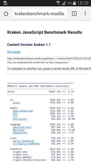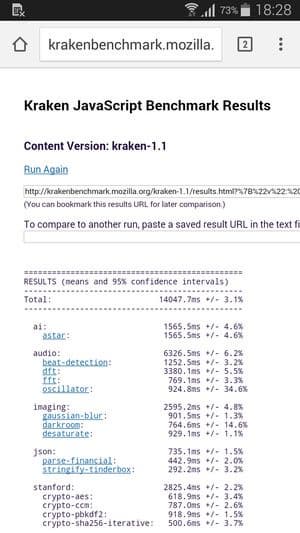 Что касается бенчмарков для оценки скорости движка javascript, то стоит всегда делать скидку на то, что в них результаты существенно зависят от браузера, в котором запускаются, так что сравнение может быть истинно корректным только на одинаковых ОС и браузерах, а такая возможность имеется при тестировании не всегда. В случае с ОС Android мы всегда стараемся использовать Google Chrome.