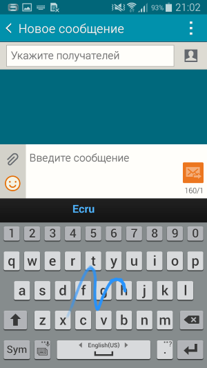 Прорисовка букв и цифр виртуальных клавиатур достаточно крупная, также есть возможность изменить размер рабочего стола целиком, а можно отдельно уменьшить блок виртуальной клавиатуры и даже передвигать его в любое место на экране. Телефонное приложение поддерживает Smart Dial, то есть во время набора телефонного номера сразу осуществляется и поиск по первым буквам в контактах. Для любителей Swype предусмотрен метод безотрывного ввода росчерком от буквы к букве, для этого необходимо включить в настройках службу Т9.