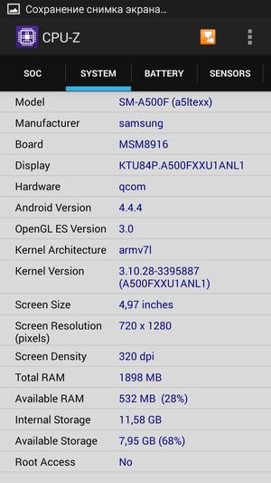 - Операционная система Android 4.4.4