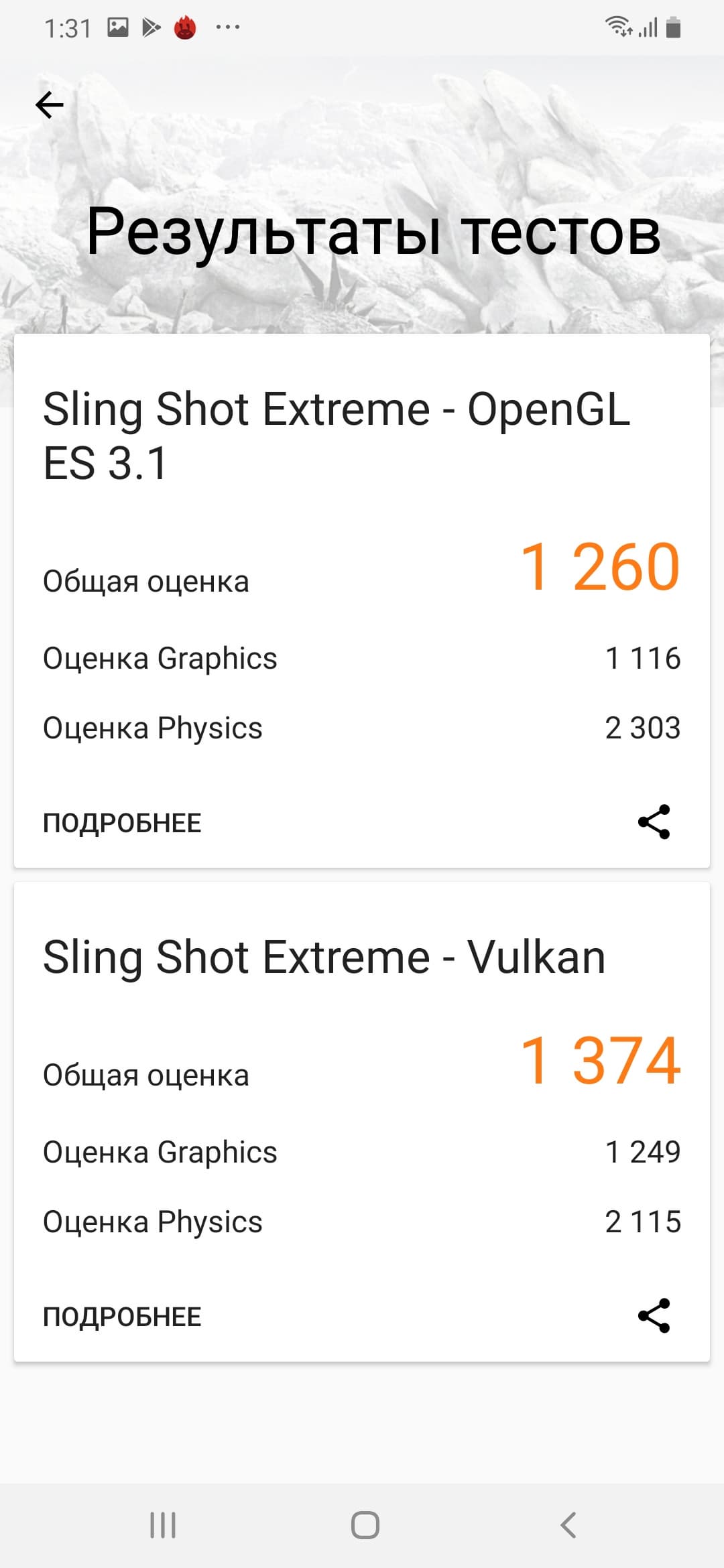 | 3DMark Ice Storm Sling Shot Ex Vulkan (больше — лучше) | 1374 | 400 | 819 | 1674 | — |
