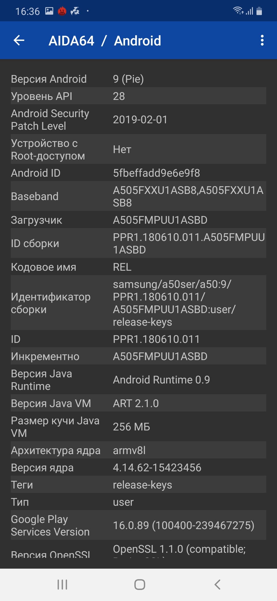 Основные характеристики Samsung Galaxy A50 (модель SM-A505FM/DS)