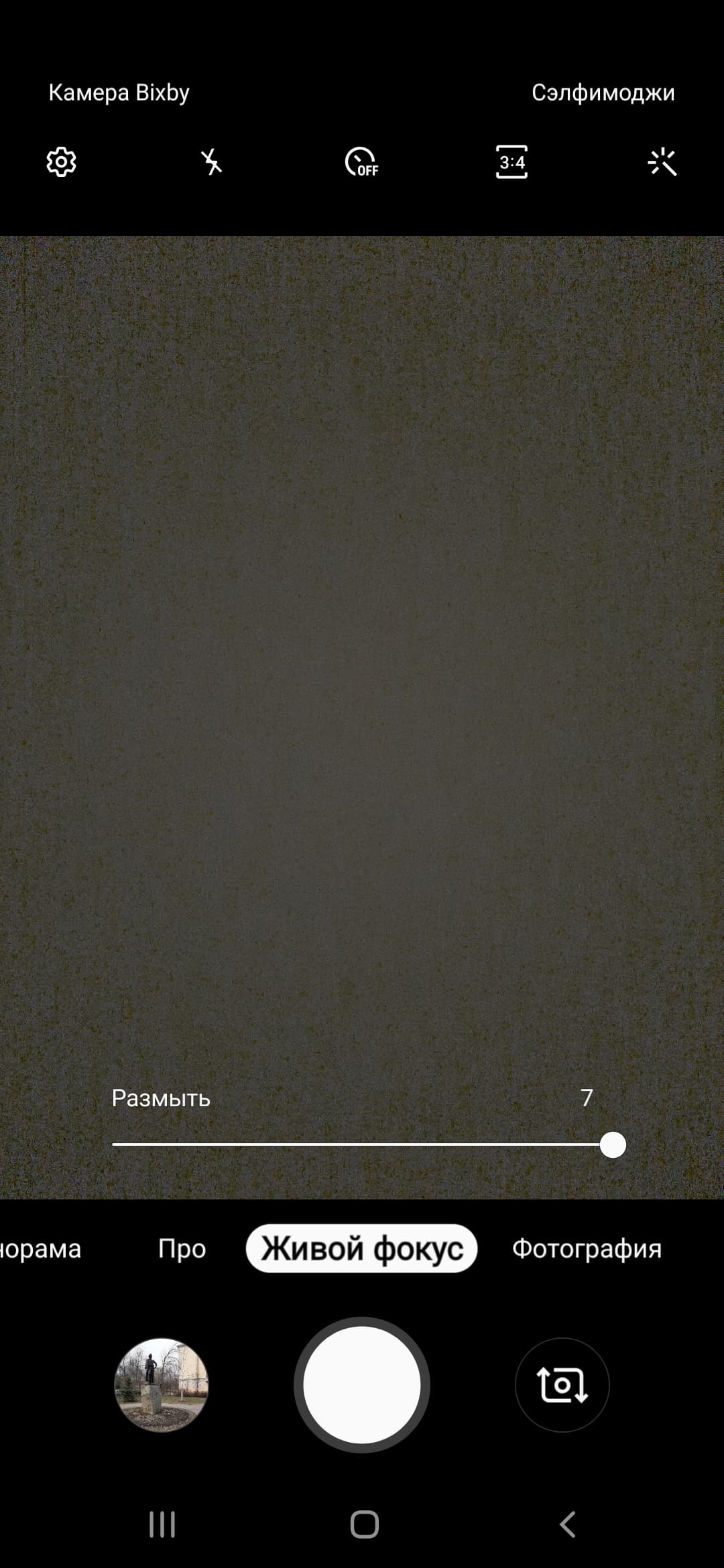 Samsung Galaxy A50 использует в качестве фронтальной камеры один модуль с разрешением сенсора 25 Мп и с объективом с диафрагмой f/2,0. Правда, как это сейчас стало модным, максимальное разрешение просто так не включить, по умолчанию смартфон будет снимать в 12 Мп. Догадываться, как выставить максимальное разрешение, придется самостоятельно, перебрав все варианты и дойдя до загадочной надписи «3:4Н». Причем возможность выбора этого режима пропадает, если снимать в режиме Живой фокус с размытием фона. Кстати, у младшей модели Galaxy А30 все устроено точно так же, но выбора «3:4Н» нет вообще.