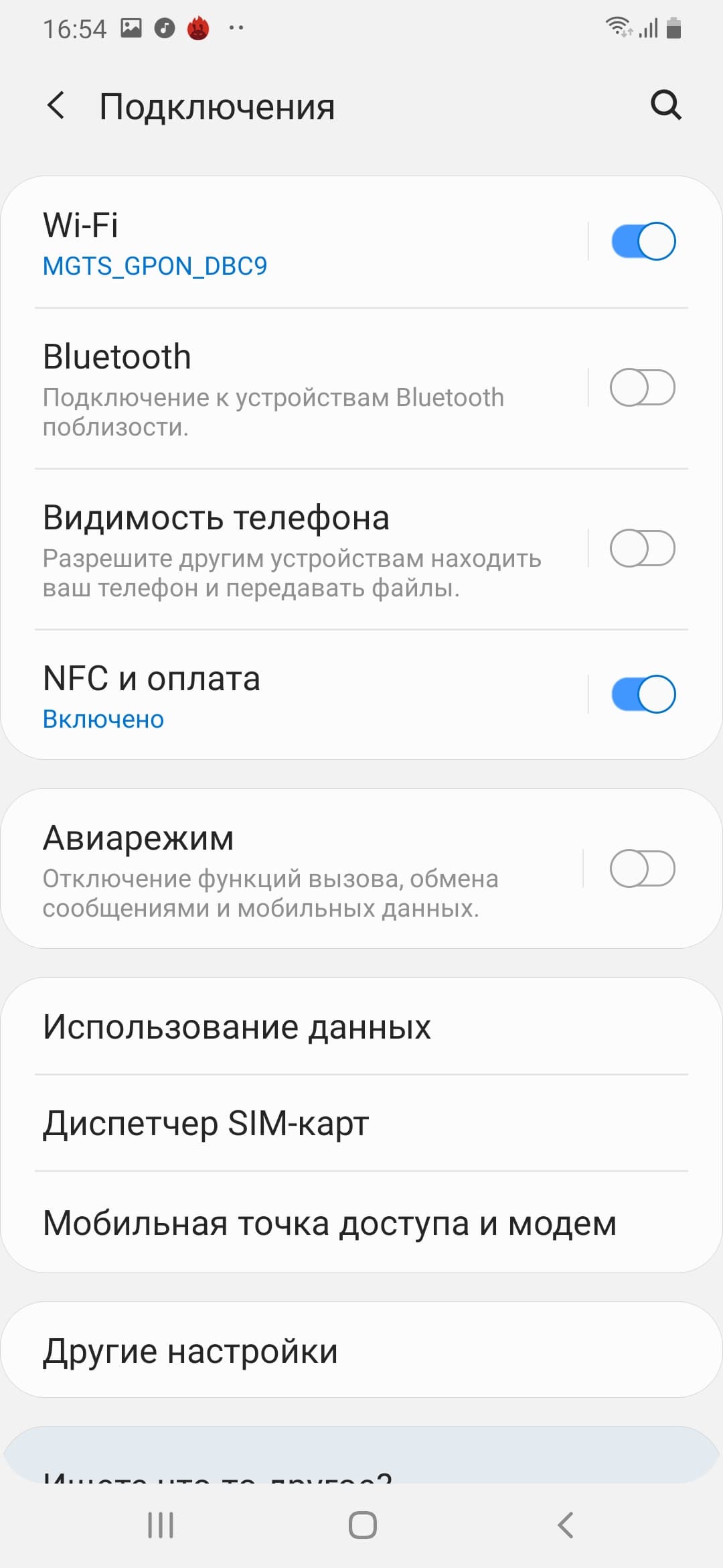 Поддерживаются оба диапазона Wi-Fi (2,4 и 5 ГГц) и режим 802.11ac, а также Bluetooth 5.0. Особенно приятно, что есть и модуль NFC, полноценно работающий с приложением «Мой проездной» и картами Тройка.