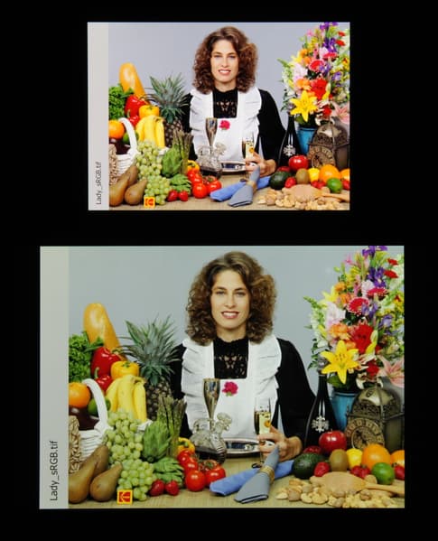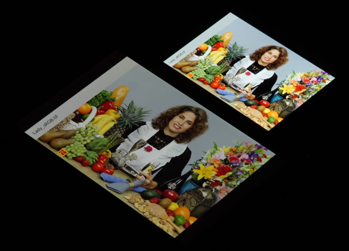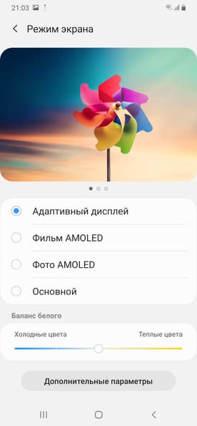 Отметим, что на экранах с широким цветовым охватом (без соответствующей коррекции) цвета́ обычных изображений, оптимизированных для устройств sRGB, выглядят неестественно насыщенными. Отсюда и рекомендация: в большинстве случаев смотреть кино, фотографии и все естественное лучше при выборе профиля Основной, и только если фотография сделана на установке Adobe RGB, имеет смысл переключить профиль на Фото AMOLED. Аналогично, профиль Фильм AMOLED уместен при просмотре видеоматериала с охватом DCI-P3, принятым в цифровом кинематографе.