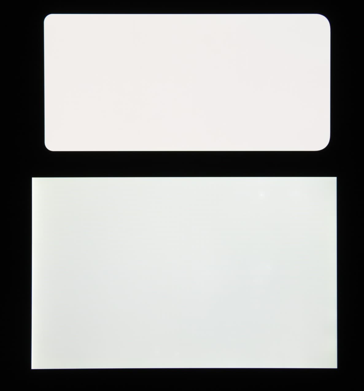 Экран характеризуется великолепными углами обзора. Правда, белый цвет при отклонении даже на небольшие углы приобретает едва заметный сине-зеленый или розоватый оттенок, но черный цвет остается просто черным под любыми углами. Он настолько черный, что параметр контрастности в данном случае неприменим. Для сравнения приведем фотографии, на которых на экраны Samsung Galaxy A50 (профиль Основной) и второго участника сравнения выведены одинаковые изображения, при этом яркость экранов изначально установлена примерно на 200 кд/м², а цветовой баланс на фотоаппарате принудительно переключен на 6500 К.