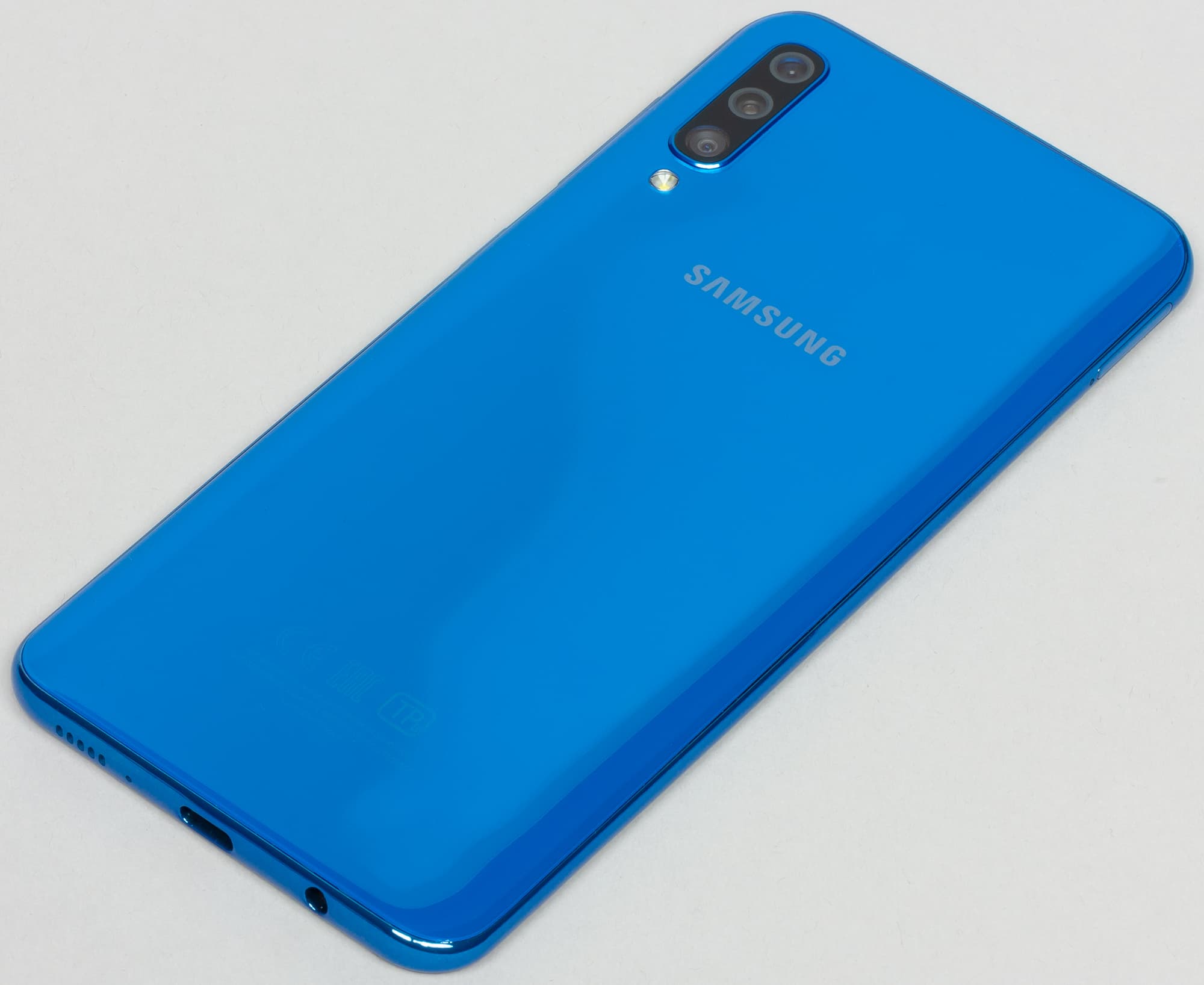 Samsung Galaxy A50 поступает в продажу в трех одинаково привлекательных окрасах: синем, белом и черном. Защиты от пыли и влаги аппарат не получил.