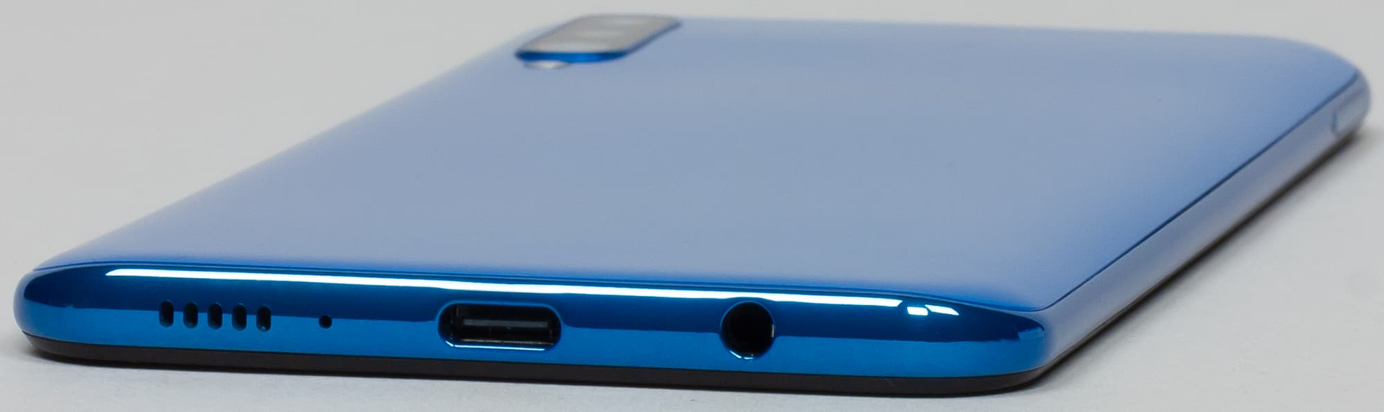 В нижнем торце порт USB представлен разъемом Type-C, что довольно приятно и неожиданно для «бюджетного» семейства. Похоже, лед, наконец, тронулся. Сюда же, в нижний торец, выведены основной динамик и разговорный микрофон. Сохранил производитель и 3,5-миллиметровый выход на наушники, что не может не радовать.