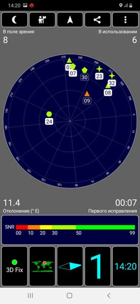 Навигационный модуль теоретически работает с GPS (с A-GPS), Глонасс, Galileo и китайской Beidou. Однако в привычном проверочном месте при холодном старте спутники почему-то обнаруживались очень долго. Странное поведение. Galaxy А30, например, «цепляется» за спутники GPS куда бойчее, как и большинство современных смартфонов. Магнитный компас, необходимый для работы навигационных программ, в аппарате имеется.