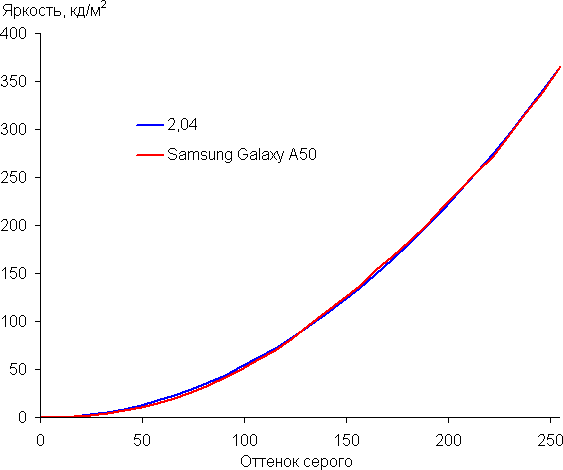 Напомним, что в случае OLED-экранов яркость фрагментов изображения динамично меняется в соответствии с характером выводимого изображения — уменьшается для светлых в целом изображений. В итоге полученная зависимость яркости от оттенка (гамма-кривая), скорее всего, немного не соответствует гамма-кривой статичного изображения, так как измерения проводились при последовательном выводе оттенков серого почти на весь экран.