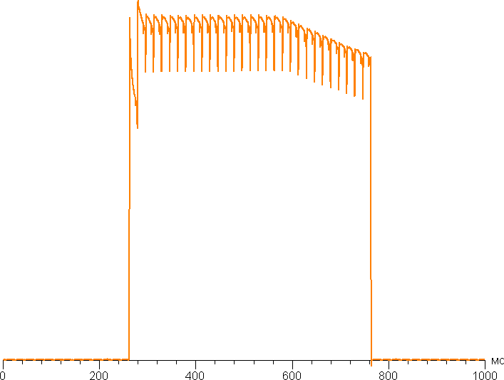 В некоторых условиях наличие такой ступеньки может приводить к шлейфам, тянущимися за движущимися объектами. Впрочем, динамичные сцены в фильмах на экранах OLED отличаются высокой четкостью и даже некоторой «дерганностью» движений. На графике выше видно, как через несколько десятков миллисекунд начинает снижаться яркость при выводе белого почти во весь экран.