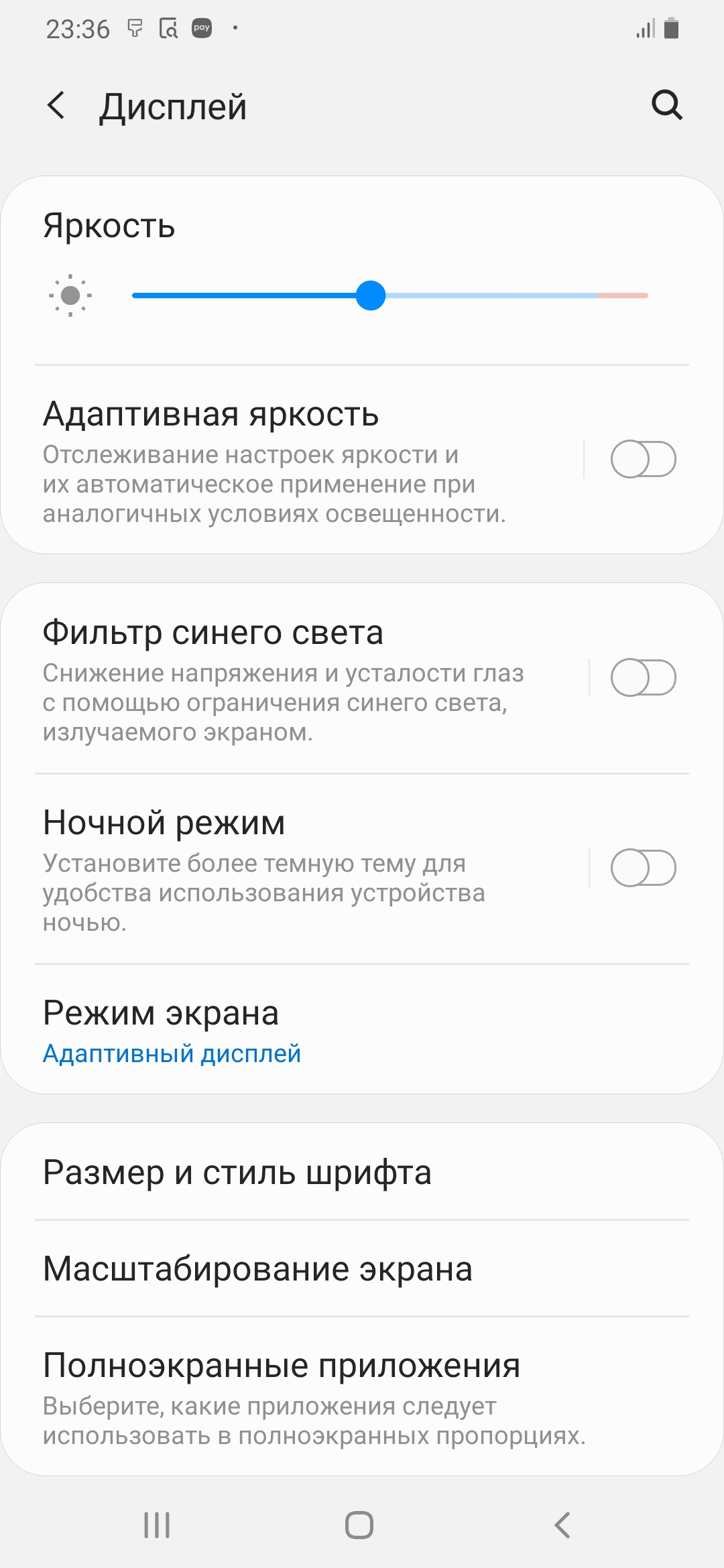 Фотография выше получена после выбора профиля Основной в настройках экрана, всего их четыре: