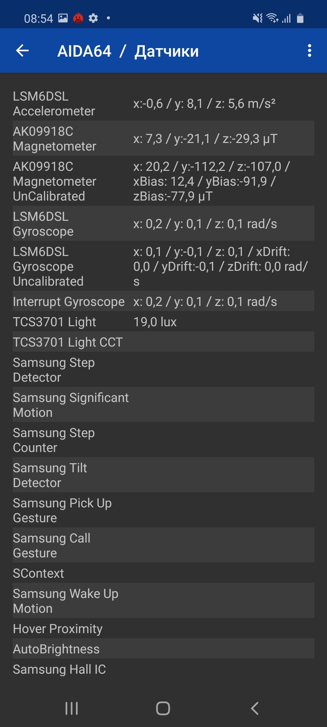 - Датчики приближения и освещения, магнитного поля, акселерометр, гироскоп
