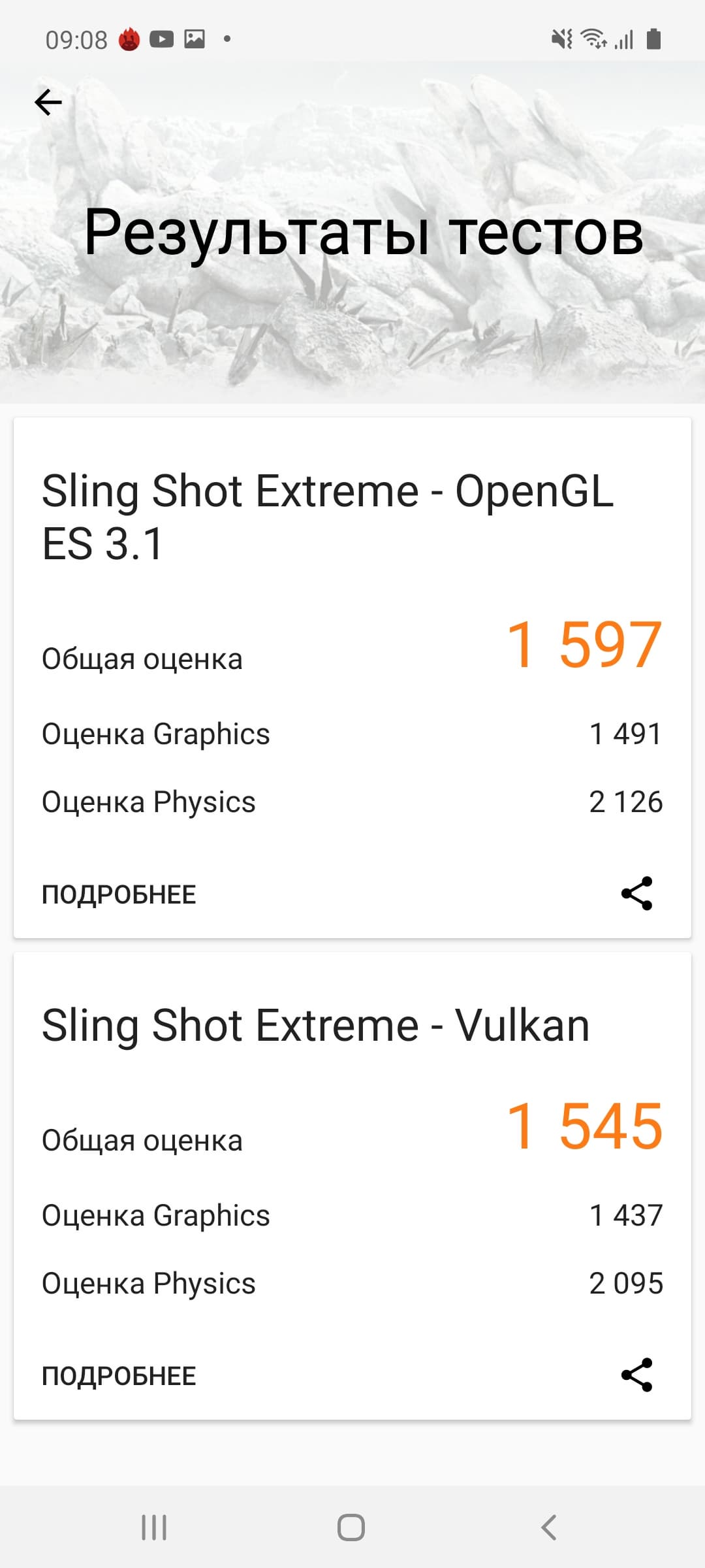 | 3DMark Sling Shot Ex Vulkan (больше — лучше) | 1545 | 860 | 1173 | 1062 | 1075 |