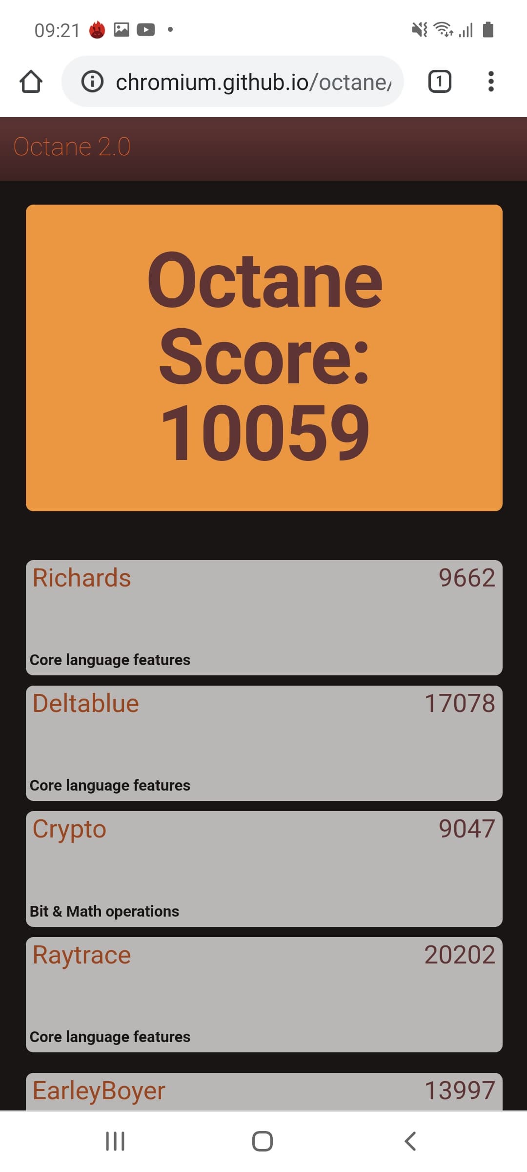 | Google Octane 2 (больше — лучше) | 10059 | 8655 | 10381 | 8831 | 16007 |