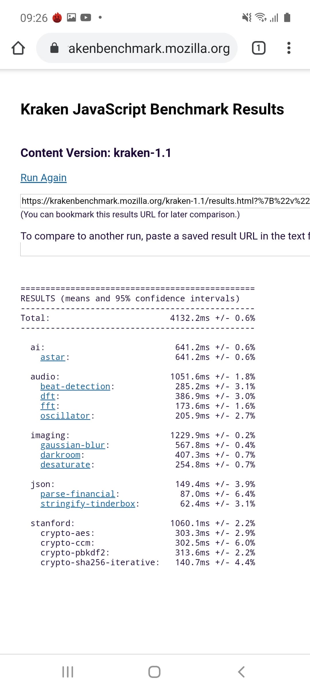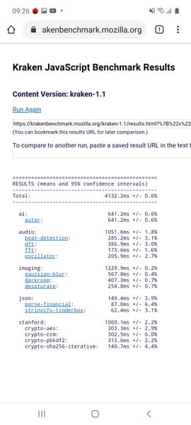 | Mozilla Kraken (мс, меньше — лучше) | 4132 | 3745 | 4542 | 4507 | 2957 |
