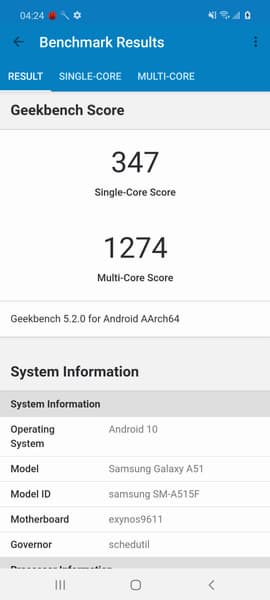 | Samsung Galaxy A51 (Samsung Exynos 9611) | Samsung Galaxy A41 (Mediatek Helio P65) | Realme C3 (Mediatek Helio G70) | Honor 9C (HiSilicon Kirin 710A) | Vsmart Live (Qualcomm Snapdragon 675) | |