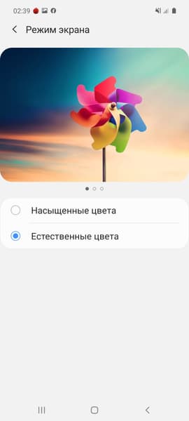 Фотография выше получена после выбора профиля Естественные цвета в настройках экрана, всего их два: