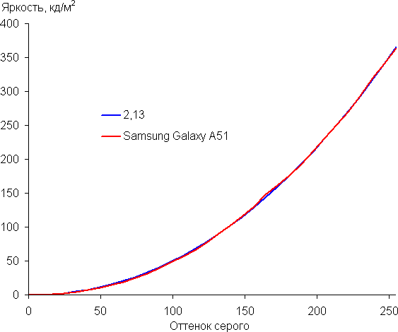 Напомним, что в случае OLED-экранов яркость фрагментов изображения динамично меняется в соответствии с характером выводимого изображения — уменьшается для светлых в целом изображений. В итоге полученная зависимость яркости от оттенка (гамма-кривая), скорее всего, немного не соответствует гамма-кривой статичного изображения, так как измерения проводились при последовательном выводе оттенков серого почти на весь экран.