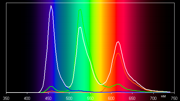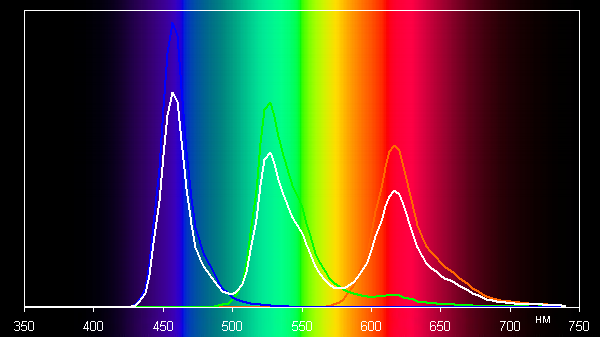 Без коррекции (профиль Насыщенные цвета) спектры компонент очень хорошо разделены: