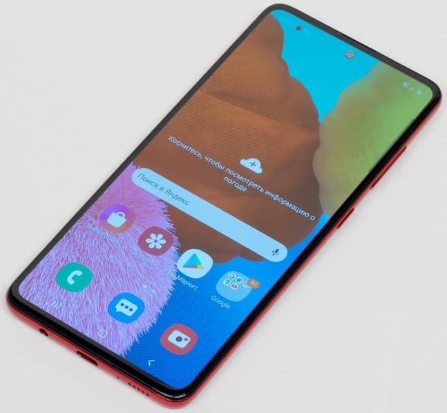 Samsung Galaxy A51 не выскальзывает из рук, на его глянцевых поверхностях остаются отпечатки пальцев, но легко стираются — покрытие надежное и практичное. В целом, смартфон выдержан в идеальном соотношении габаритов, массы и размера экрана, чтобы одновременно быть удобным для удержания и комфортным для работы с большим экраном.