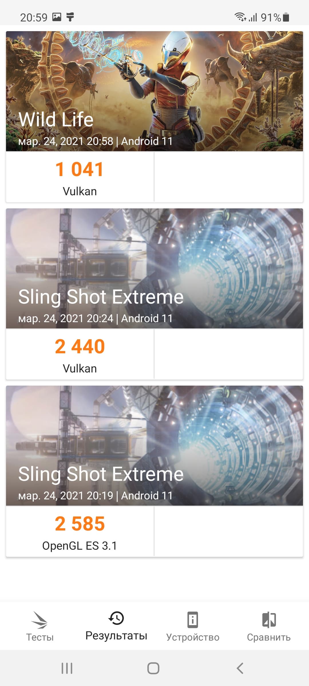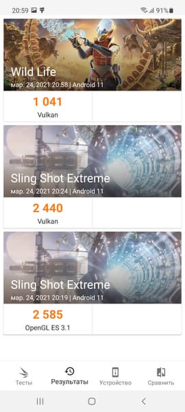 | 3DMark Ice Storm Sling Shot ES 3.1 (больше — лучше) | 2585 | 2621 | 2754 | 4016 | 1248 |