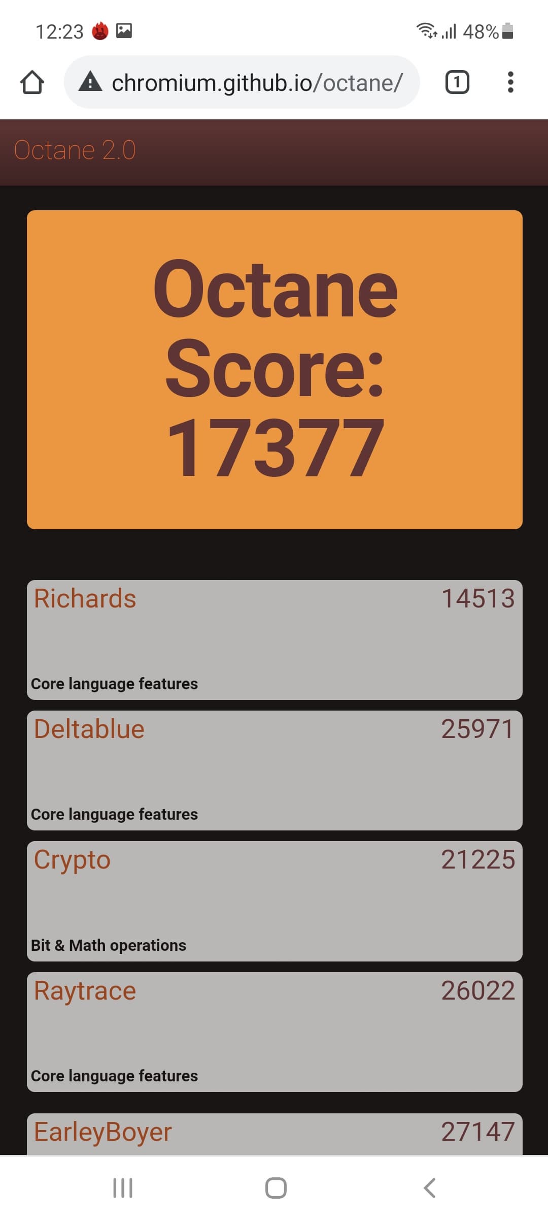 | Google Octane 2 (больше — лучше) | 17377 | 14852 | 15765 | 14246 | 12817 |