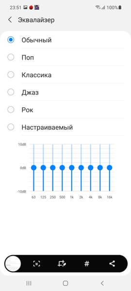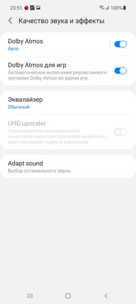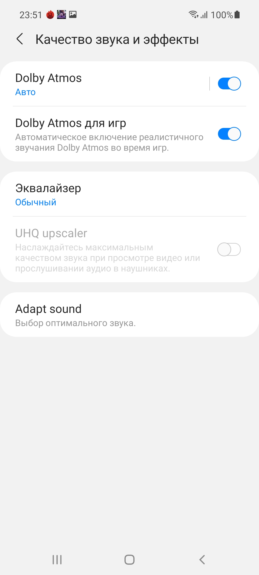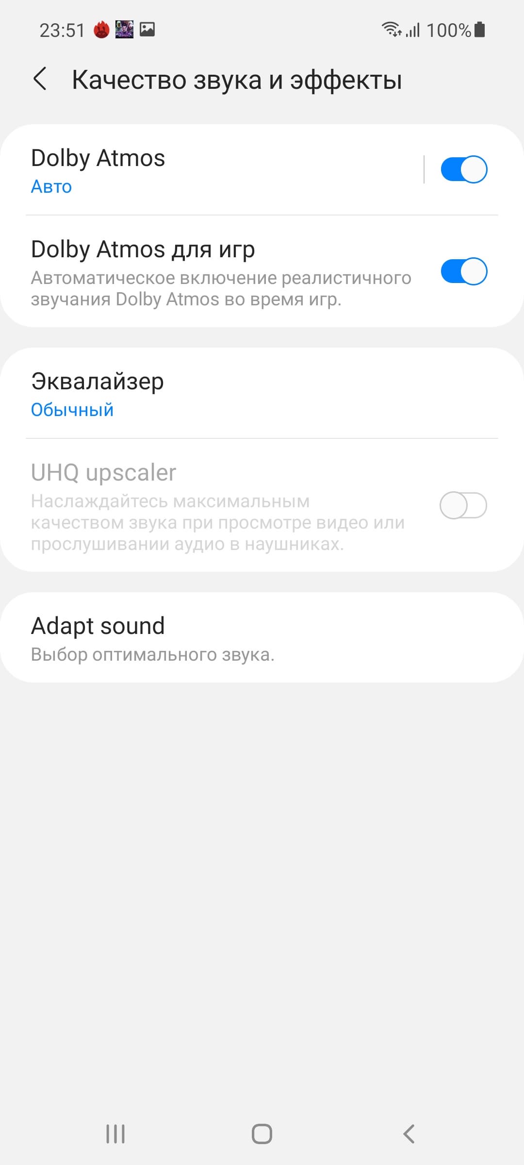 У смартфона великолепное стереозвучание: аппарат выдает из двух динамиков чистый и насыщенный звук, хотя и не самый громкий. В наушниках звучание тоже отличное. Настроек масса, есть поддержка Dolby Atmos, девятиполосный эквалайзер, оптимальные возрастные автоматические пресеты и многое другое. Радует также, что не забыт 3,5-миллиметровый аудиовыход для проводных наушников.