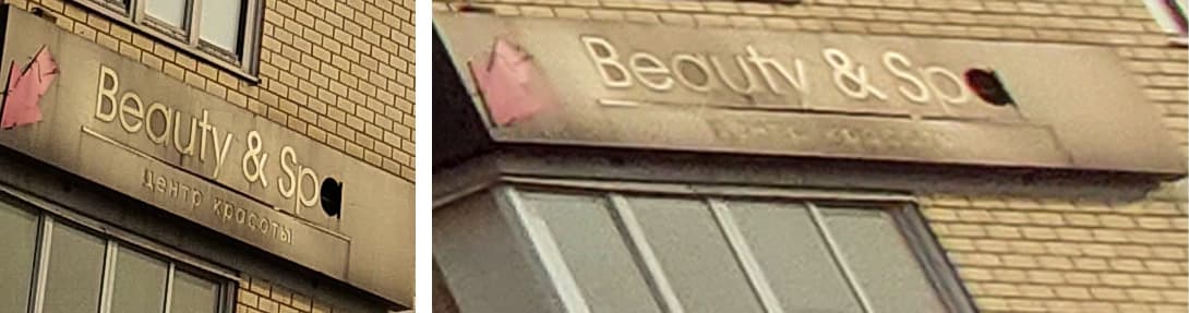 При этом про широкоугольную съемку лестно отозваться не удается. Здесь собраны все характерные для бюджетных «шириков» недостатки: низкая детализация, блеклые краски, сильные смазы по краям кадра. Детализация ухудшается настолько, что даже довольно крупные надписи отчетливо различаются на фотографиях основной камеры, но оказываются совершенно нечитаемыми на широкоугольных фотографиях.