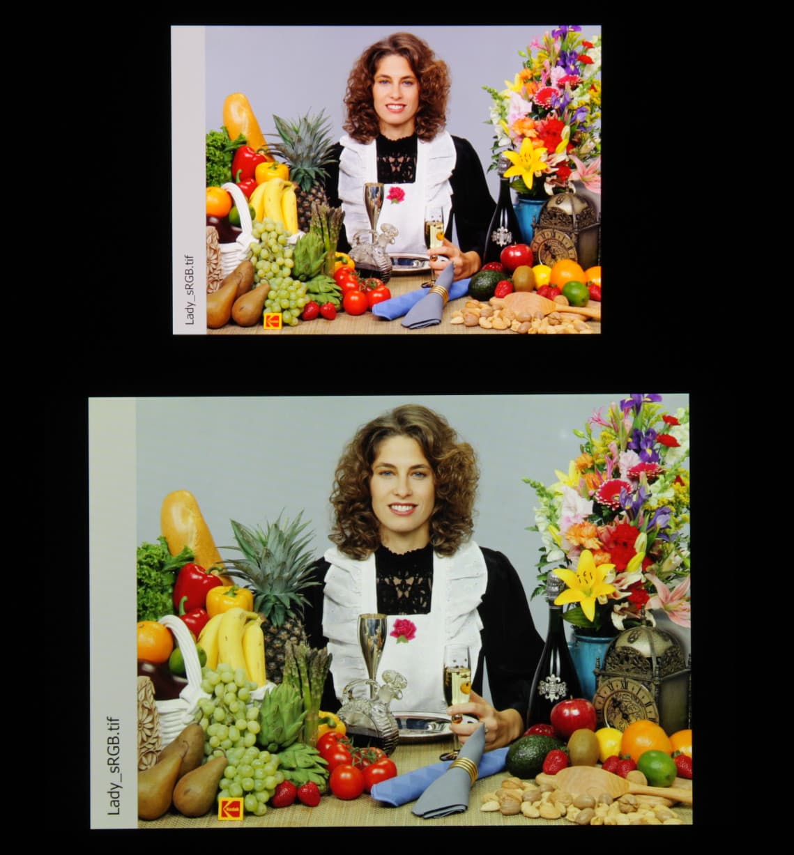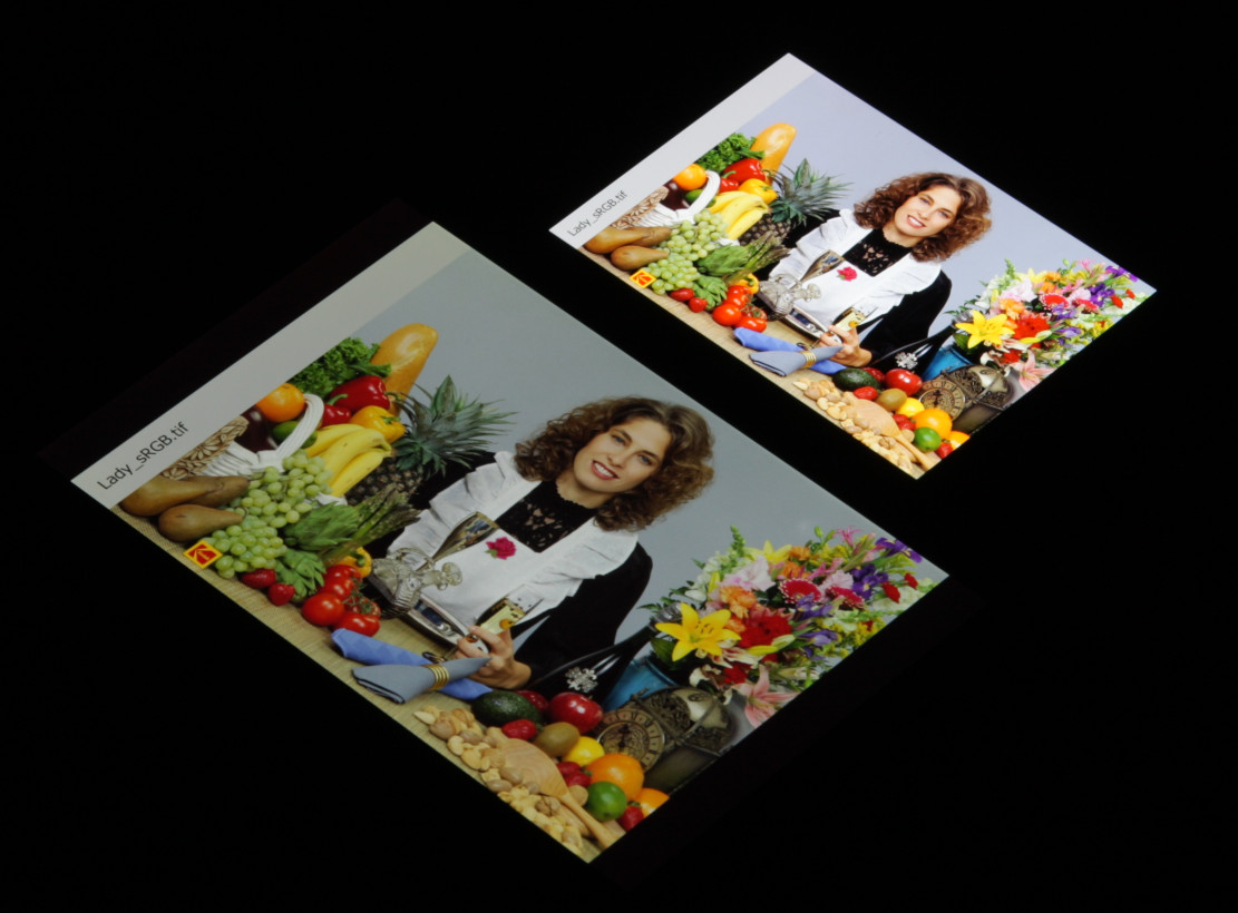 Отметим, что на экранах с широким цветовым охватом (без соответствующей коррекции) цвета́ обычных изображений, оптимизированных для устройств sRGB, выглядят неестественно насыщенными. Отсюда и рекомендация: в большинстве случаев смотреть кино, фотографии и все естественное лучше при выборе профиля Естественные цвета. И только если фотография или видеоматериал сделаны с охватом DCI, принятым в цифровом кинематографе, или Adobe RGB, то имеет смысл переключить профиль на Насыщенные цвета.
