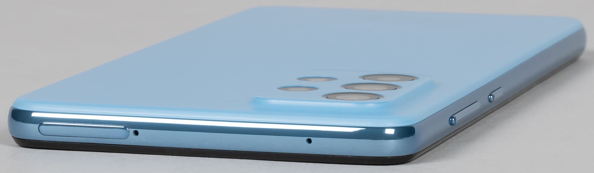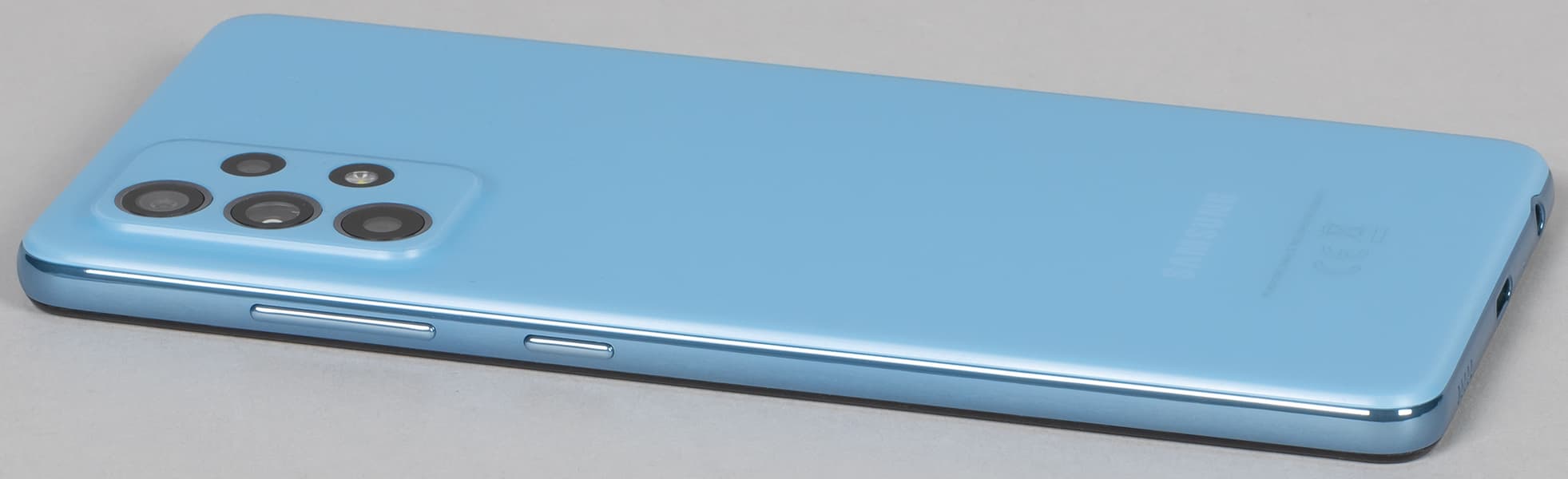 Samsung Galaxy A52 имеет сзади блок с четырьмя камерами и ярким светодиодом. В стандартный для среднеуровневого смартфона набор камер входят основной и широкоугольный модули, а также датчик глубины резкости и модуль для макросъемки: