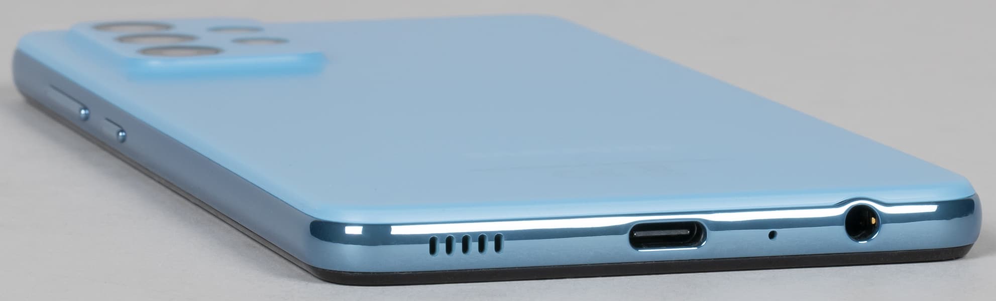 В торце снизу установлены разъем USB Type-C, динамик, разговорный микрофон и разъем 3,5 мм для наушников.