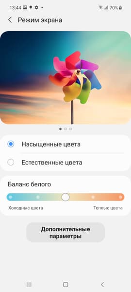 Фотография выше получена после выбора профиля Естественные цвета в настройках экрана, всего их два: