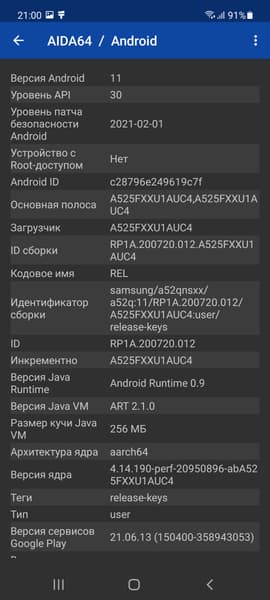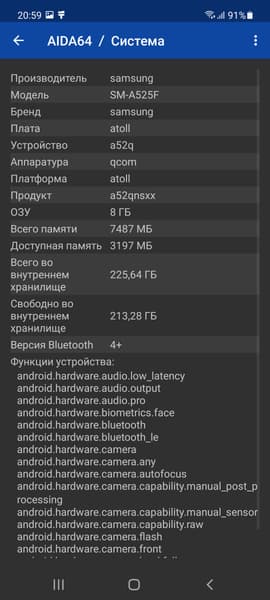 Основные характеристики Samsung Galaxy A52 (модель SM-A525F)