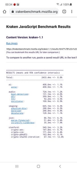 | Mozilla Kraken (мс, меньше — лучше) | 2433 | 2856 | 3162 | 3269 | 5586 |