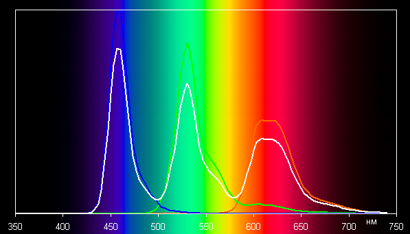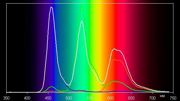 Без коррекции (профиль Насыщенные цвета) спектры компонент очень хорошо разделены: