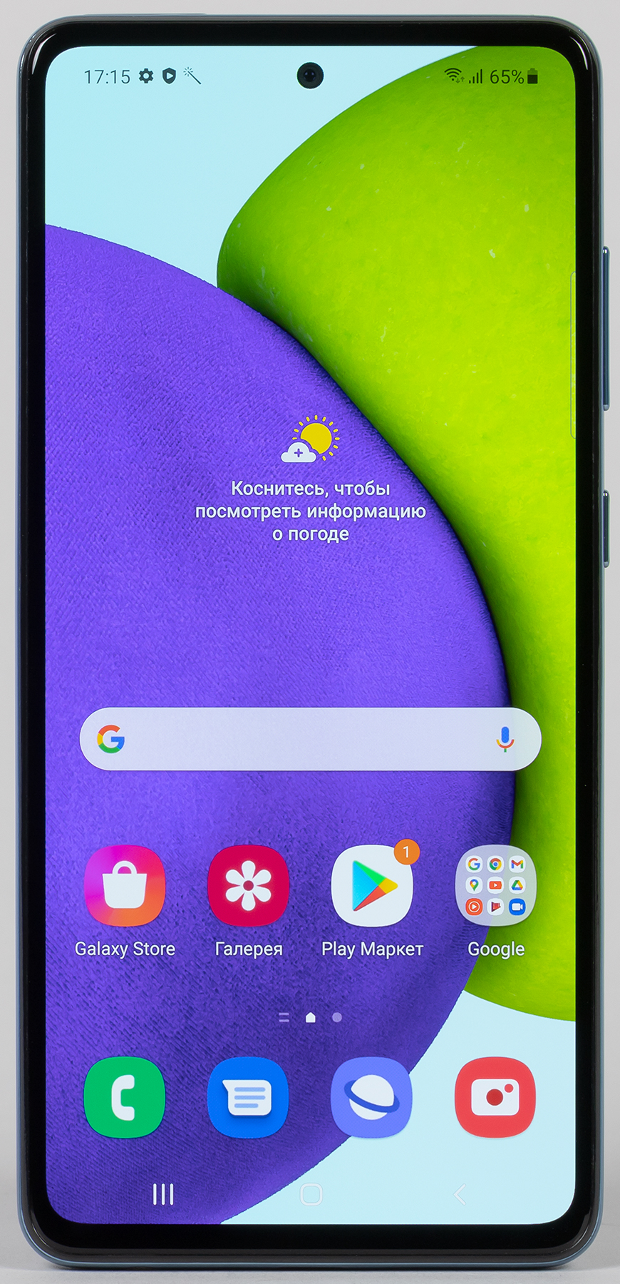 Цветопередача хорошая, цвета в меру насыщенные, цветовой баланс у экранов немного различается. Напомним, что фотография не может служить надежным источником сведений о качестве цветопередачи и приводится только для условной наглядной иллюстрации. В частности, выраженный красноватый оттенок белого и серого полей, присутствующий на фотографиях экрана Samsung Galaxy A52, при перпендикулярном взгляде визуально отсутствует, что подтверждается аппаратными тестами с помощью спектрофотометра. Причина в том, что спектральная чувствительность матрицы фотоаппарата неточно совпадает с этой характеристикой человеческого зрения.