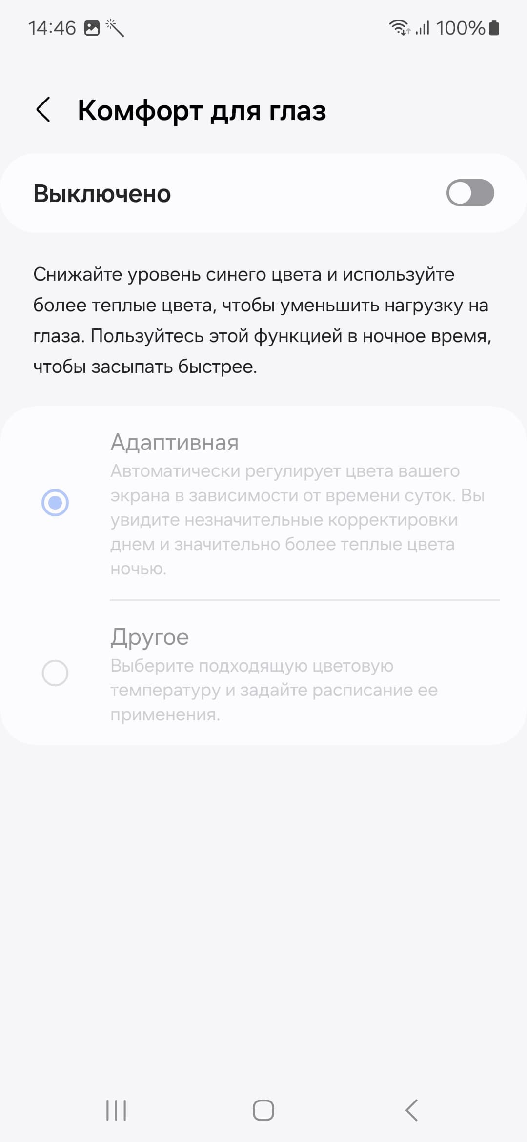 Есть функция Комфорт для глаз, для которой в настройках даже приведено белее-менее корректное описание.