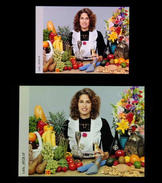 Отметим, что на экранах с уширенным цветовым охватом (без соответствующей коррекции) цвета́ обычных изображений, оптимизированных для устройств sRGB, выглядят неестественно насыщенными. Отсюда и рекомендация: в большинстве случаев смотреть кино, фотографии и все естественное лучше при выборе профиля Естественные цвета.